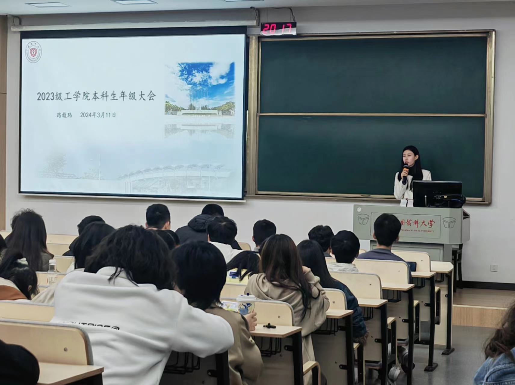 为做好新学期员工教育管理服务及安全工作,3月11日,EVO真人视讯在教学楼D313教室召开2023级本科生春季学期年级大会暨反诈安全教育会议。会议由辅导员路馥玮老师主持。