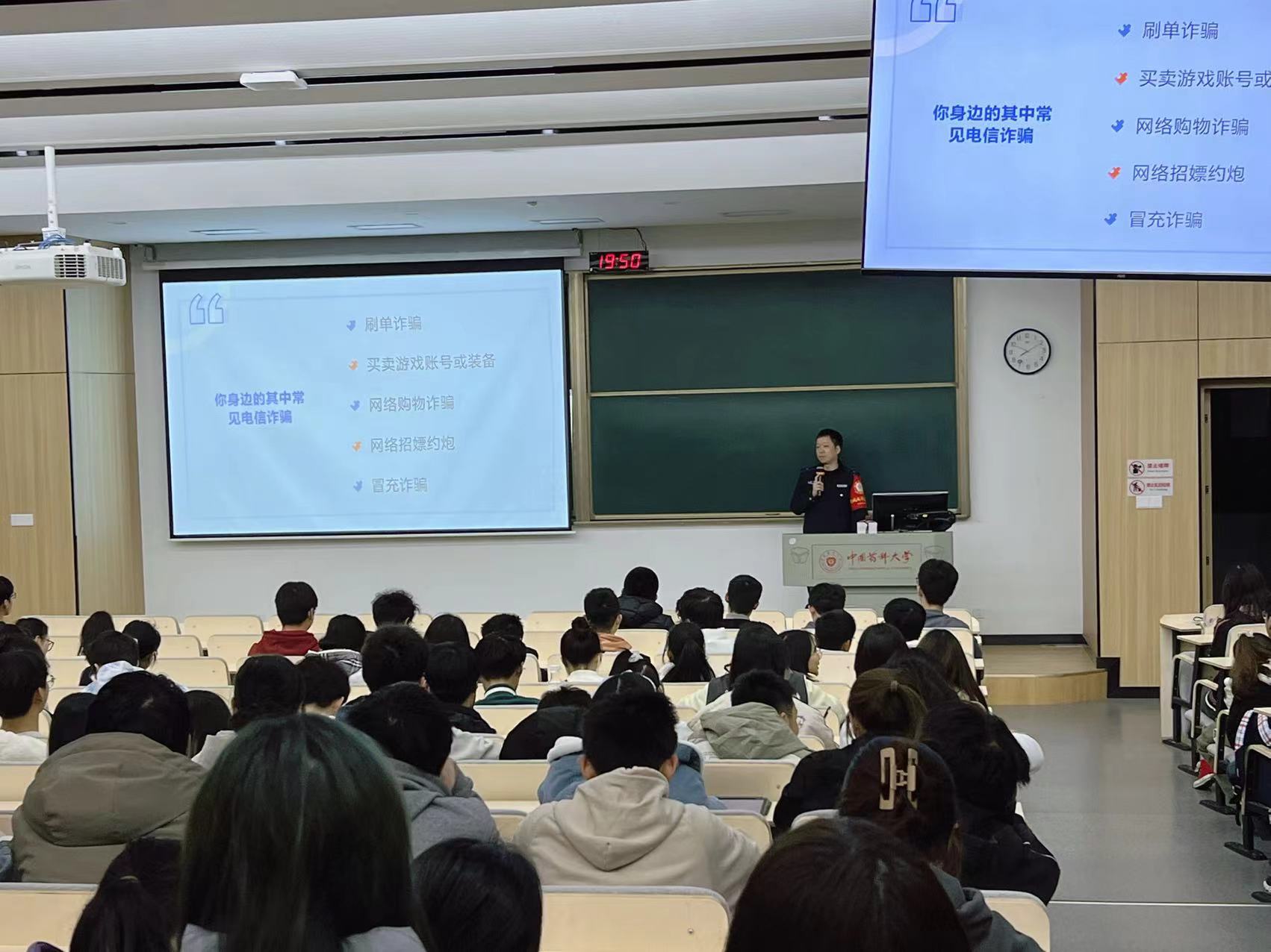 会议邀请江宁高新区派出所白警官为2023级200余位同学开展了反诈主题教育。白警官根据公司员工特点及具体案例,围绕诈骗分子的诈骗手段、校园高频案例、反诈骗方法和技能等方面进行深入讲解。白警官强调,安全无小事,同学们切勿思想麻痹、疏忽大意,要不断学习安全防诈技能,提高风险防范能力。