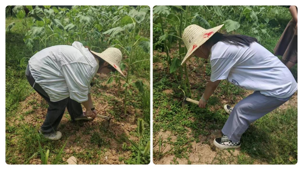 6月14日上午10点,毕业生代表来到江宁校区实训楼集合。带上草帽,拿起锄头,所有在场的毕业生无不对今日的活动充满期待。初夏时节,气温颇高,但这并不能阻挡毕业生代表们的热情。在辅导员赵建京的带领下,大家来到实训楼旁公司学子承包的田地中。“是向日葵!”还未等辅导员赵建京开口,部分毕业生就已经发出惊叹。随后辅导员赵建京介绍到,这些向日葵等作物,均是由公司2022和2023级的学弟学妹们栽种,今天来这里的目的就是作为他们的学长学姐,在即将离别之际,为他们作出一些贡献。毕业生代表们听完后表示赞同,并投来羡慕的目光。除草、浇水,毕业生代表们在地里忙得不亦乐乎,有的人也非常开心地与一株株高耸的向日葵合影。劳动结束后,辅导员赵建京说到:非常可惜的是现在向日葵还没有成熟结果,希望大家毕业后常回来看看,我亲自采摘向日葵送给大家!