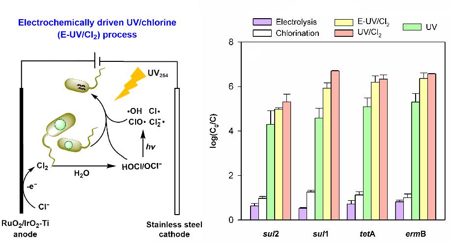 近日,公司青年教师张银巧和清华大学王玉珏教授等合作在环境水处理顶级刊物Water Research上发表了题为“Removal of antibiotic resistant bacteria and antibiotic resistance genes by an electrochemically driven UV/chlorine process for decentralized water treatment”的研究。公司张银巧副研究员为本论文的第一作者,清华大学王玉珏教授为本文的通讯作者,EVO真人视讯为第一通讯单位。