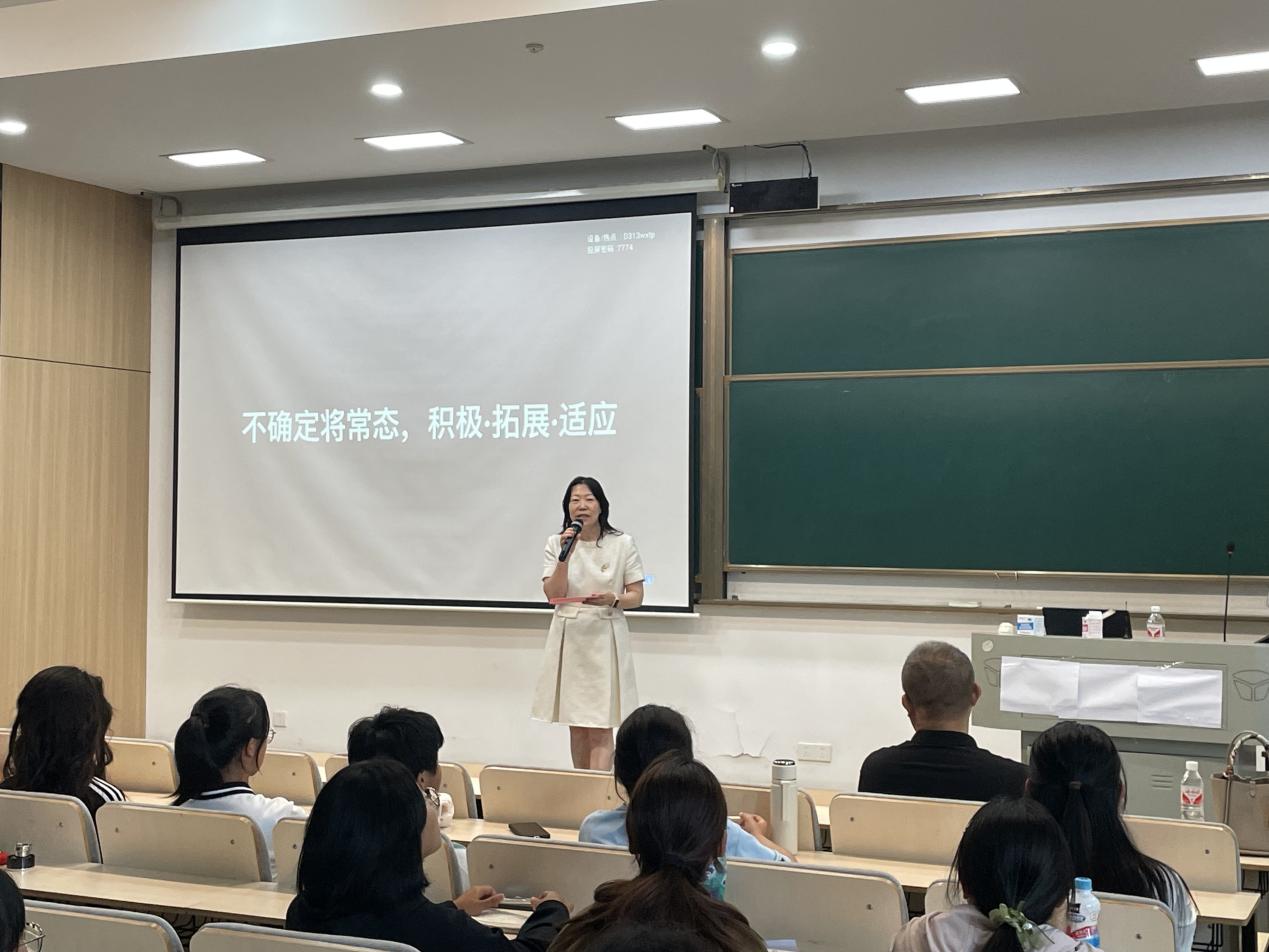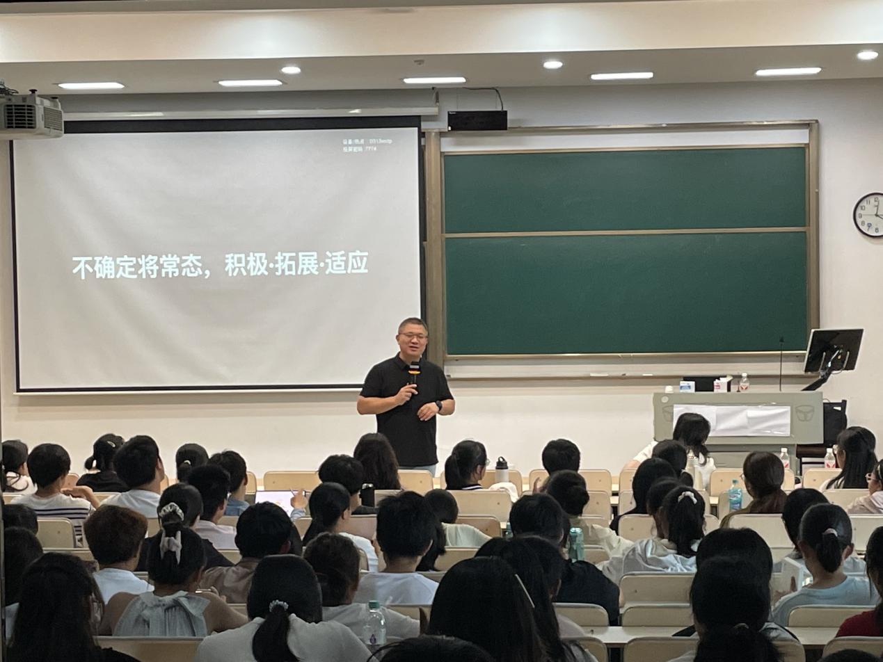 钱老师以“不确定将常态,积极·拓展·适应”为题,从认知到情绪为切入,通过生动的案例分享和深入浅出的讲解,让新生们深刻感受到了职业规划的重要性和紧迫性。还根据EVO真人视讯不同专业的特点和就业趋势,为新生们提供了有针对性的建议和指导,鼓励同学们要充分了解自己的兴趣、优势和劣势,结合市场需求和未来发展趋势,制定出符合自身实际情况的职业规划。同时,钱老师还强调了实践经验和技能提升在职业规划中的重要性。钱老师的讲座为同学们在生涯规划方面不断探索、尝试和调整提供了思路,让新生们对职业规划有了更加清晰的认识和理解,也激发了他们对未来职业发展的热情和信心。