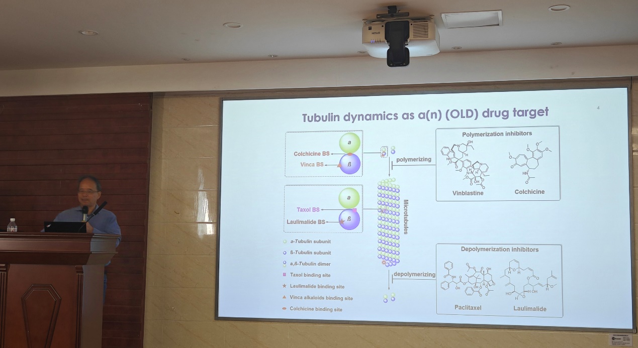 在报告中,李卫教授详细介绍了其实验室如何针对癌症和癫痫适应症开展小分子药物的理性设计与结构优化过程,分别阐述了其实验室在微管蛋白抑制剂和TRPC3离子通道抑制剂的分子设计、构效关系与体内外活性评价方面取得的研究成果,成功设计、合成并筛选得到数个选择性高、药效显著的小分子先导化合物。此外,李教授团队通过系统的生物学实验验证了先导化合物的药理作用和机制,进一步探明了其在癌症和癫痫治疗中的应用潜力。