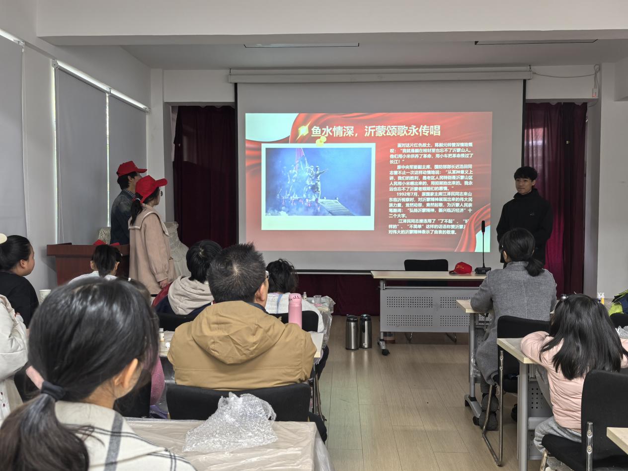 宣讲团成员首先向社区亲子介绍了沂蒙精神的起源和核心价值观,随后通过讲述沂蒙老区的革命故事,让孩子们了解沂蒙人民在革命年代的英勇事迹和无私奉献。活动过程中,志愿者、家长和孩子三方互动,共同学习沂蒙精神,增进亲子间的交流与理解。