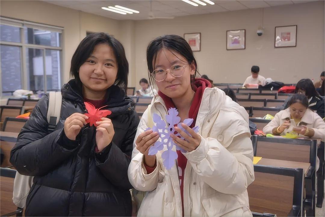 同学们纷纷拿起剪刀和彩纸动手创作。大家充分发挥自己的想象力和创造力,将手中的彩纸变成了一件件精美的艺术品。有的同学剪出了栩栩如生的雪花,将冬日的浪漫定格在了纸上;有的同学创作了寓意吉祥的元旦主题图案,展现出对新年的美好憧憬;还有的同学别出心裁,将剪纸与现代元素相结合,赋予了传统艺术新的活力。