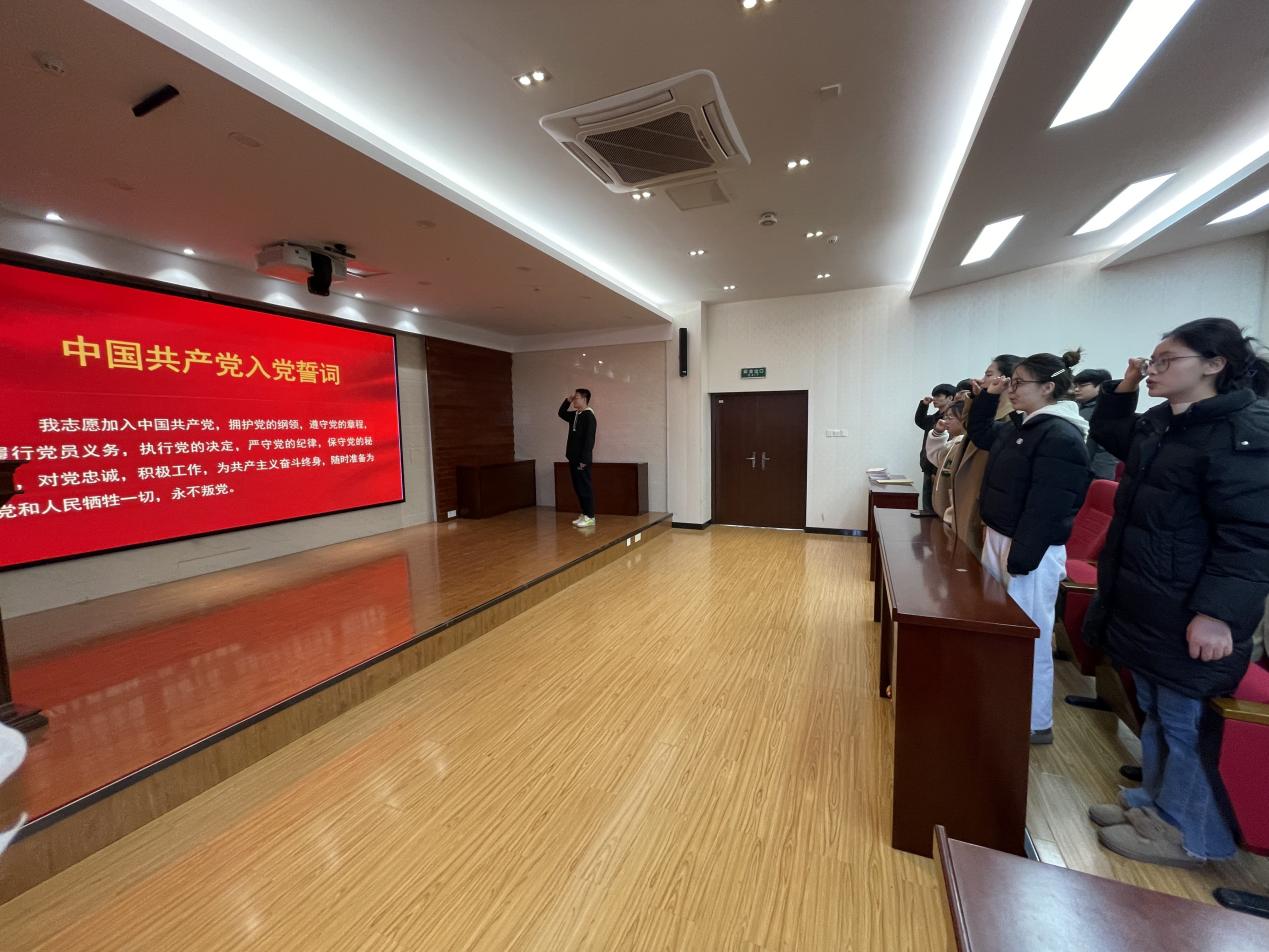 最后,活动进入“重温誓词,薪火相传”环节。全体党员目光坚毅,庄严地举起右拳,重温入党誓词。老党员们逐一为新党员佩戴党徽。这一时刻,党徽不仅是新党员身份的象征,更是老党员对新党员的期望与传承。党徽虽小,却承载着党的光辉历史和使命担当,它将在每一位党员的胸前闪耀,照亮前行的道路。