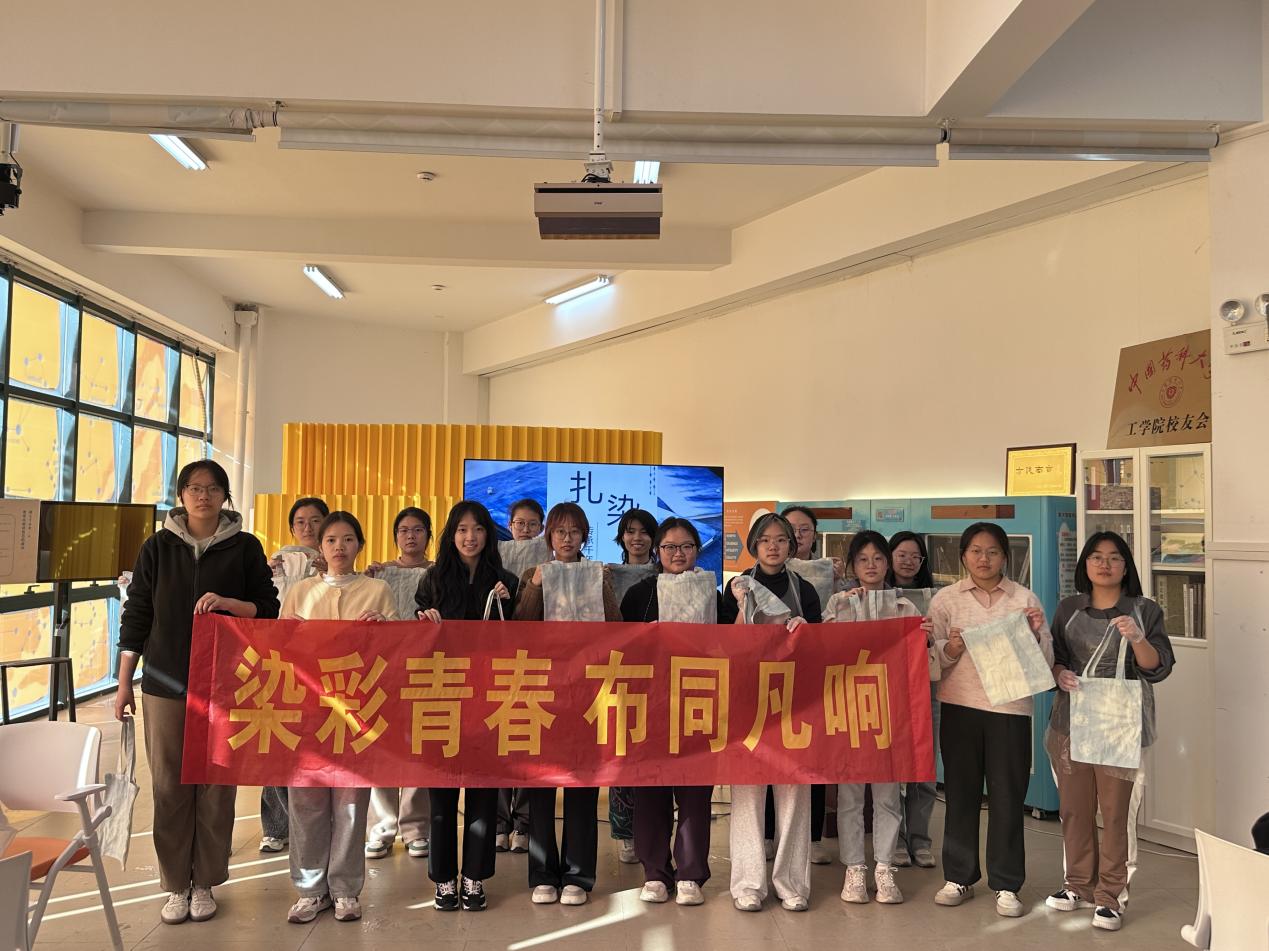 为传承中华优秀传统文化,推进校园美育内涵式发展,EVO真人视讯团委创新融合非遗传承与生态教育,于近日在文华苑“一站式”员工社区成功举办“染彩青春·‘布’同凡响”主题扎染体验活动。活动通过沉浸式非遗体验与环保实践的双向赋能,为数十名师生搭建了传统技艺与现代创意交融的实践平台。