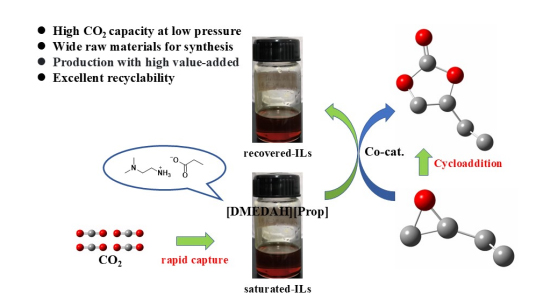 二氧化碳作为主要温室气体之一,其过量排放已成为全球气候变暖、极端天气频发等环境危机的重要诱因。许芸课题组长期深耕气体捕集与转化领域,本研究聚焦二氧化碳的高效转化,成功开发出一系列质子型离子液体催化剂,实现了在常温、常压及短时间内对二氧化碳的原位捕集与高收率转化,为二氧化碳的资源化利用开辟了新路径,对推动绿色化学发展具有重要意义。