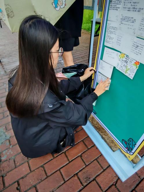 活动开始前一天,工作人员向报名员工发放明信片。参与者们通过明信片分享世界各地特色、美食、文化及旅行小贴士,写下旅行见闻与实用攻略。之后工作人员在“一站式”员工社区回收明信片,并给参与的同学发放了小礼品。同学们用简单的绘画和文字分享了他们与一座城市的连接与印记,并把这份记忆用这种独特形式展示出来,与大家交流。活动结束后,参与者们将明信片贴到展示墙上,定格了这场探索世界之旅的美好瞬间。