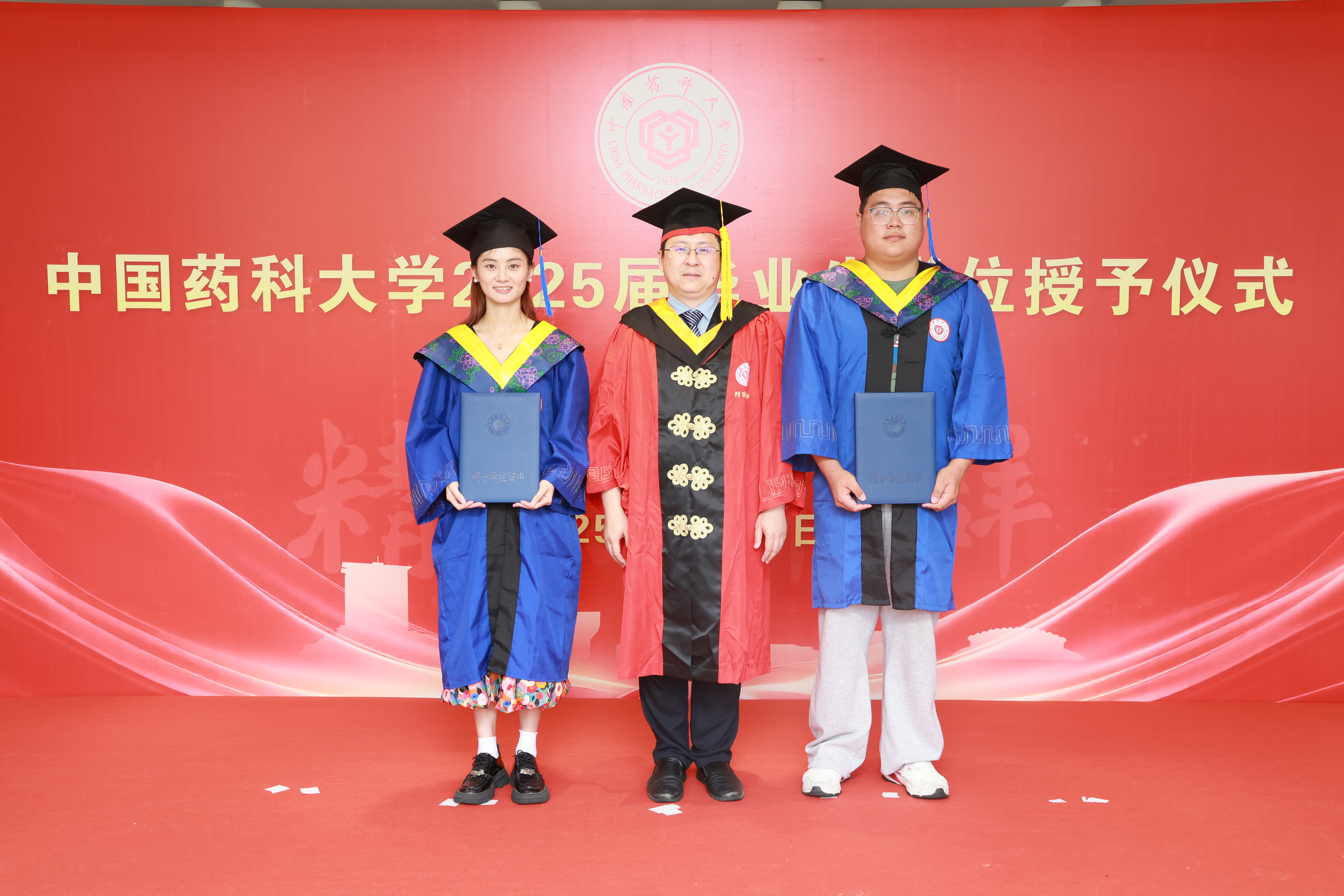 随后,在庄重而温馨的氛围中,毕业生们依次入场。黄德春为每一位毕业生细心拨流苏,象征着学业的圆满完成与新征程的开启;蔡挺亲手为毕业生颁发学位证书,并与他们合影留念,定格下这一珍贵瞬间,现场充满了喜悦与感动。