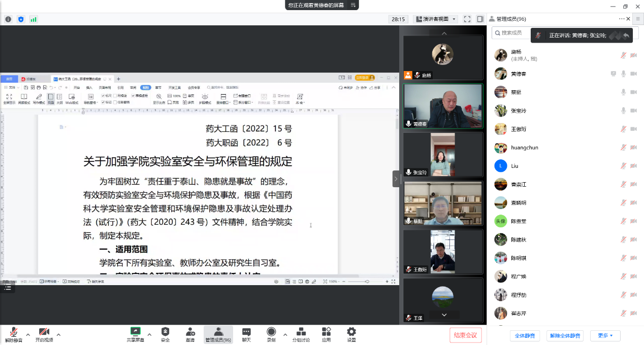 会上,蔡挺经理首先回顾了公司近期发生的实验室安全事故,通报了相关处理情况,并反复强调了实验室安全、生物安全的重要性。随后,黄德春副经理对公司新印发的《关于加强公司实验室安全与环保管理的规定》进行解读,他从规定适用范围、责任人认定、责任范围、责任处分等方面向全院教职工作详细介绍。蔡挺经理补充强调,处分不是最终目的,今后公司将进一步完善奖惩体系,不仅对问题实验室进行处理,更要对做得好的实验室进行奖励和宣传。最后,公司党委书记张宝玲作总结讲话,她再次强调了实验室安全的重要性,希望全体师生员工都能严格遵守实验室管理规定。