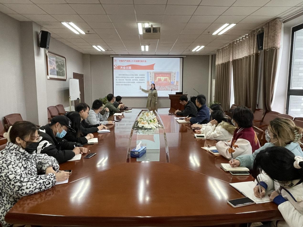 会上,孔玉玲老师以《 学习二十大,踔厉奋发,勇毅前行,团结奋斗 》为题,从深刻领会党的二十大的主题和主要成果、新时代十年的伟大变革及其里程碑意义、开辟马克思主义中国化时代化新境界、新时代新征程中国共产党的使命任务、新时代新征程的战略部署、学习贯彻党的二十大精神的要求等出发,对党的二十大精神进行了系统阐述和深入解读,并就如何讲好二十大精神,如何上好专题党课同与会人员进行交流探讨。