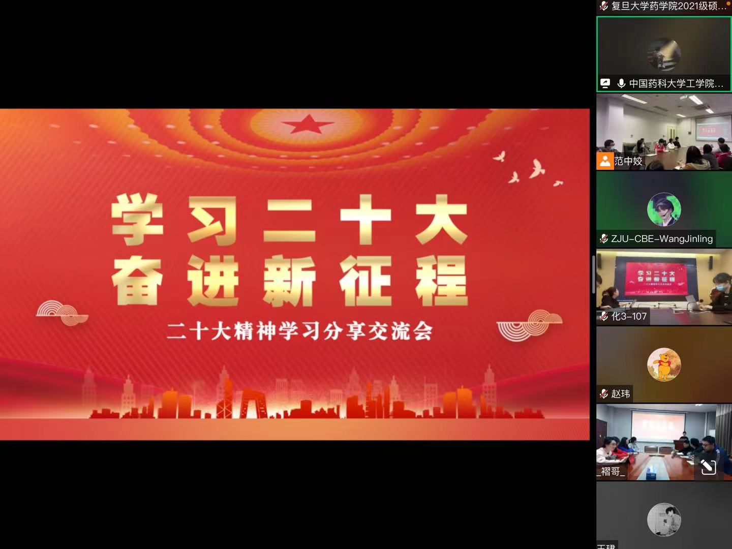 为进一步落实《关于教育系统深入学习宣传贯彻党的二十大精神的通知》要求,113日晚,EVO真人视讯2021级本科生党员同复旦大学药公司2021级硕士研究生第一党支部、浙江大学化学工程与生物工程公司联合化学反应工程研究所(以下简称“联反所”)研究生第二党支部联合开展“学习二十大、奋进新征程”主题学习活动,上述党支部的党员及部分发展对象参加学习,学习通过线上线下结合的方式进行,会议由EVO真人视讯2021级本科生党支部书记赵旭主持。