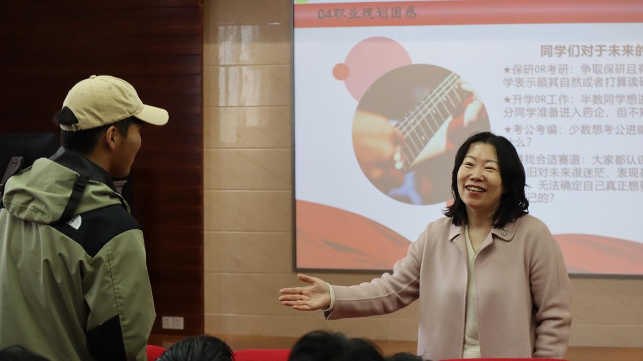 班会最后,张书记结合同学们提出的关于转专业、专业分流以及未来职业规划等问题,以自己的亲身经历为样板,向同学们分享了自身的求学经历、职业选择经历,并对同学们感兴趣的专业发展、升学就业等情况进行耐心细致的解答,帮助同学们从自身出发,做好职业生涯规划。