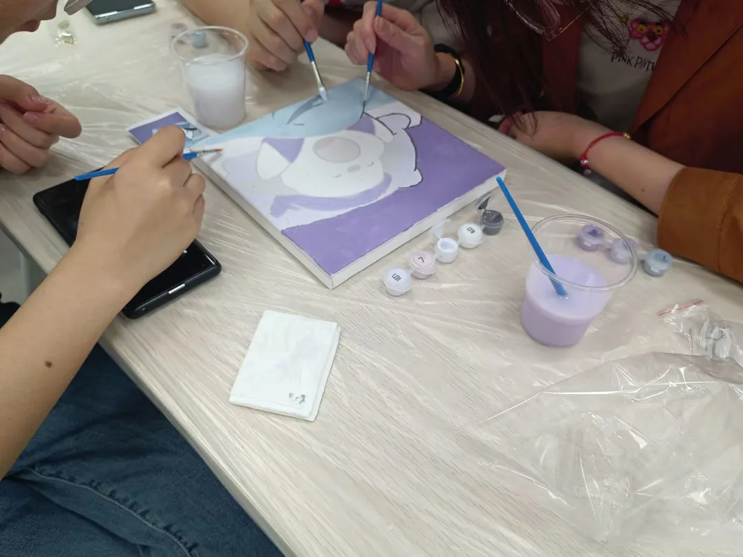 在本次数字油画活动中,共计有30组约80名同学参与活动。活动过程中不仅有同学细心按照画上的线条描绘,也有同学发挥了自己的想象力,在原本一片紫色的夜空中添加了星星和月亮,给画作添加了属于自己的标志。值得一提的是,在这个以小组形式进行的活动中,同学们都表现出了出色的团队精神,经过小组全员通力合作,凭借共同的目标和默契的分工,最终完成了一幅幅美丽的油画作品。