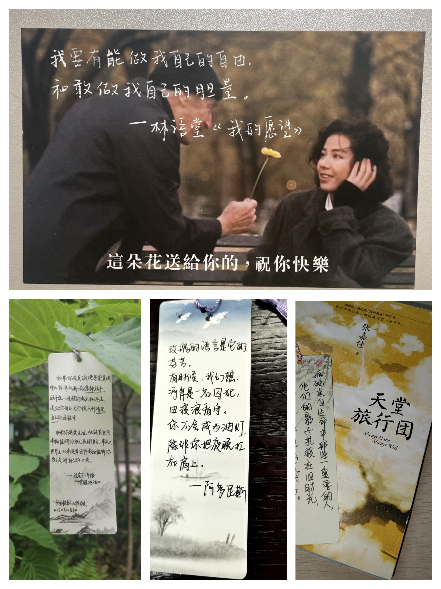 活动开始前,生活部便提前为同学们准备了书签,并建立了活动群,通过“空间”等方式进行宣传,并且在活动期间每天将事先准备好的海报放在食堂进行宣传。感兴趣的同学在加入活动群并了解相关事项之后,在领取的书签上摘抄下喜欢的句段或写下自己的阅读感想,悬挂于校园的草木之上。志趣相投者在书签悬挂处相互交流,或者在活动群里尽情畅谈。