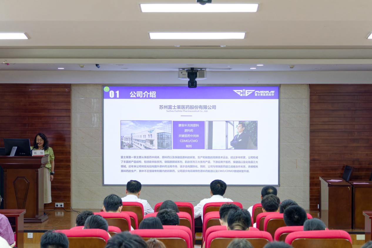 颁奖典礼结束后,钱怡总监为与会师生作了题为“走进富士莱”的企业宣讲报告,详细介绍了公司发展历程、资质及荣誉、研究与开发、产品与经营以及发展规划等,并与现场师生互动交流,欢迎公司更多优秀学子在学成之后前往就职,共同建设企业美好的明天。