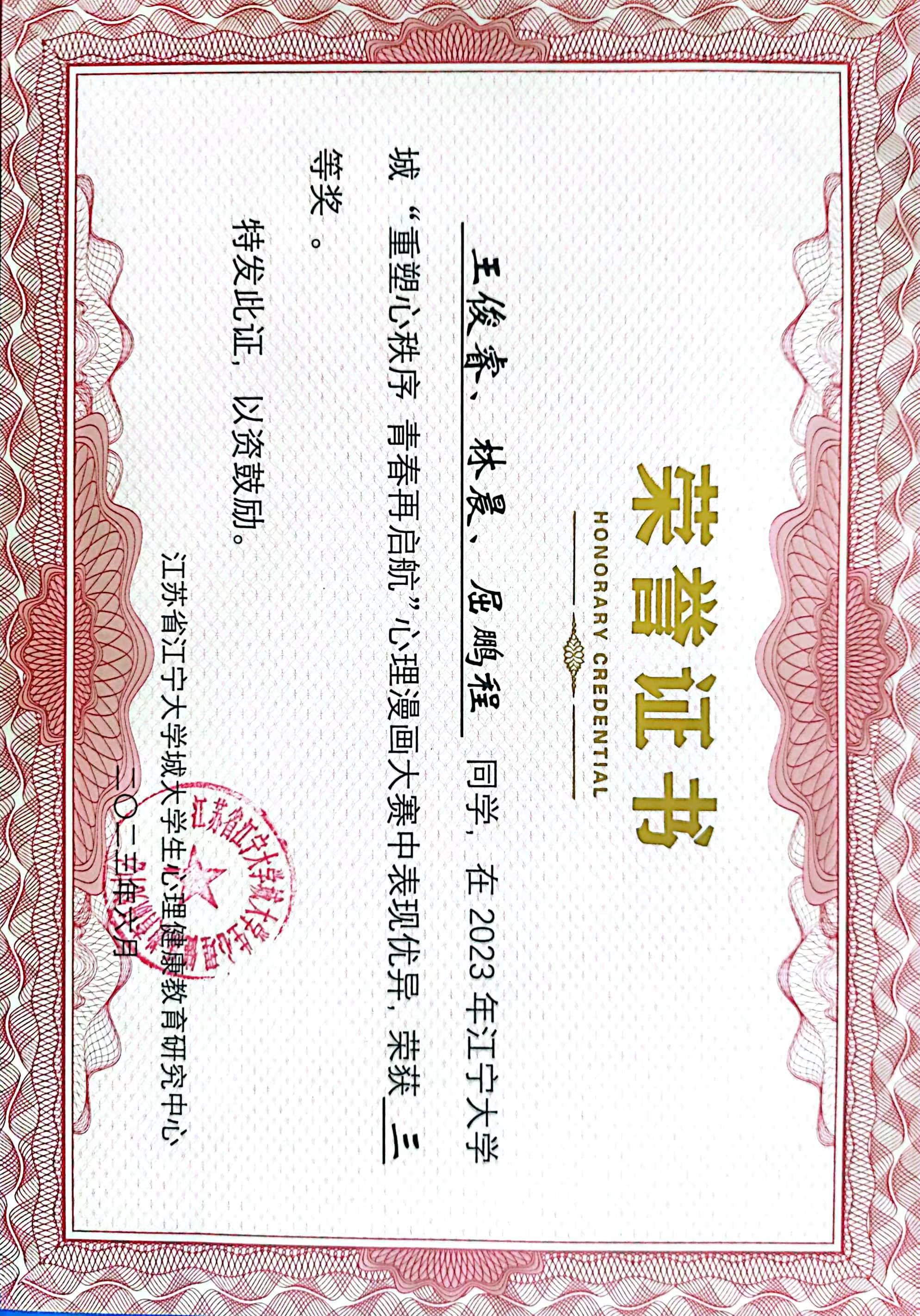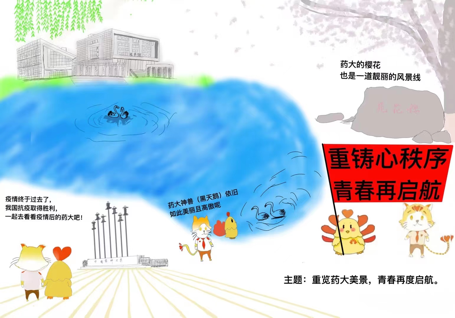 公司王俊睿、林晨、屈鹏程三位员工的作品《重览药大美景,青春再度启航》,在江宁大学城“重塑心秩序 青春再启航”心理漫画大赛中荣获三等奖。