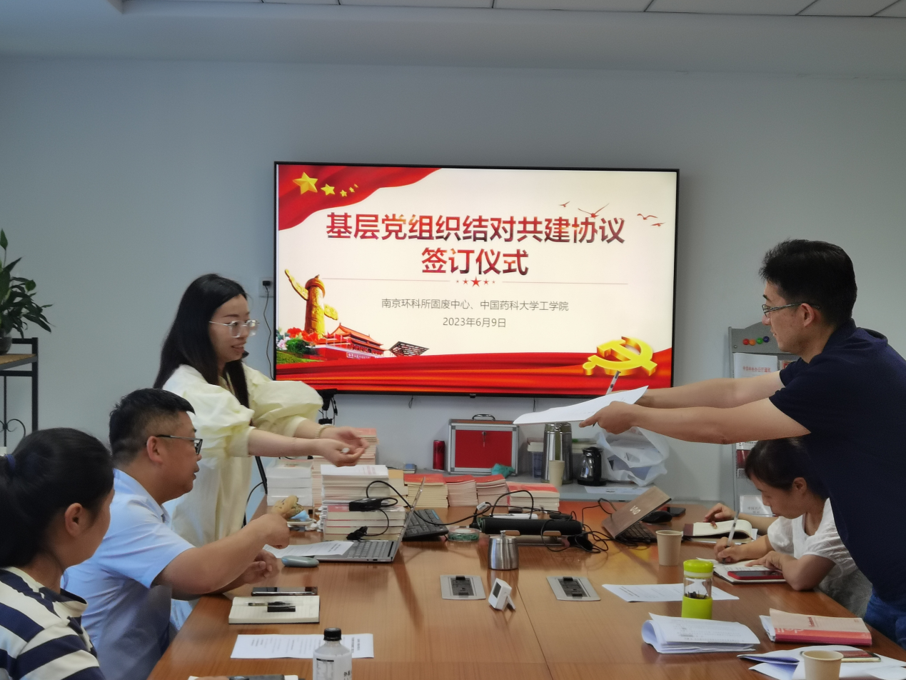 最后,EVO真人视讯环境科学教师党支部与南环所固废中心党支部签订基层党组织结对共建协议,深入推进党组织之间融合共建。陈建秋书记介绍本次活动背景,期望在今后的合作中以“党建+”活动为抓手,加深业务和党建内容,践行习近平总书记“两山论”。