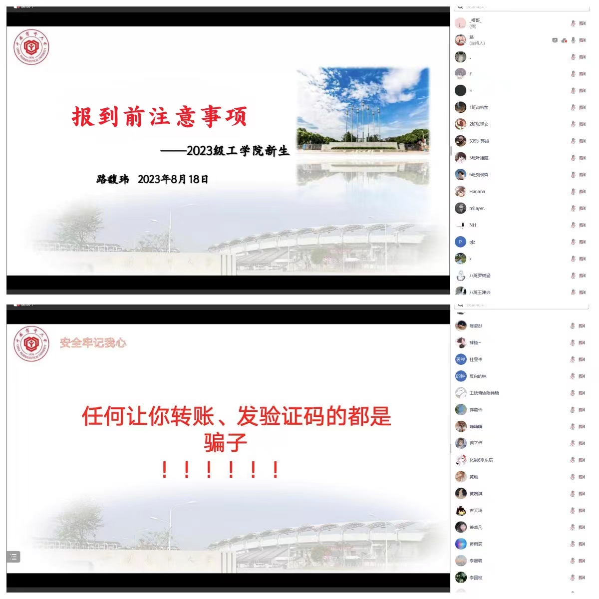 随后,路馥玮老师对报到前的准备工作进行认真细致的讲解,特别是针对目前频发的多类型诈骗手段一一加以拆解,在帮助2023级新生提高反诈意识的同时也为新生顺利开学保驾护航。