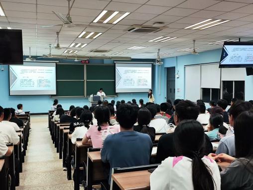 辅导员路馥玮从公司、公司概况引入,首先介绍了校规校纪和校内学习生活相关的基础设施与配套服务,提供了校内常用部门联系方式与信息网站。其次介绍了与同学们息息相关的日常事务办理流程,方便大家办理事项少跑路、快办结。随后,辅导员邀请一名新生带头做“防诈骗安全”宣誓,强调要提高保密意识和防诈意识,要守住底线、遵纪守法、注意交通、防火防电等各类安全问题。最后,辅导员对大家的老员工活提出了几点期待:一是适应大学,确定目标,注意身份转变。要做好开启老员工活大门的思考,明确自己未来要成为什么样的人,为成为杰出人才而不断努力奋斗;二是不断成长,注重能力提升。要在老员工涯中提升自己的专业技能、工作能力、人际交往能力等,为以后步入社会做好准备;三是保持身体与心理健康,要在课余时间多运动、多锻炼,保持积极向上的生活态度,寻找舒缓压力的解决办法。