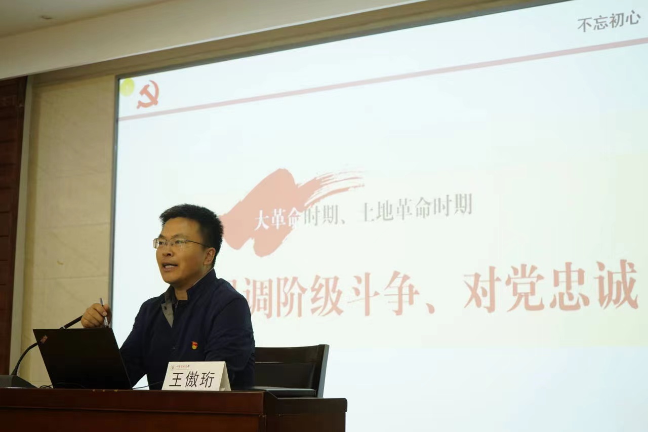 王傲珩副书记以《入党誓词变迁与共产党人的初心和使命》为题,结合党的百年奋斗史,为同学们梳理了不同历史时期我党入党誓词的内容与内涵,分析了不同版本入党誓词的时代背景、鲜明特色和精神要义。他结合经典的红色故事,阐述了我们党从不放松党的建设、善于把握不同历史时期的主题和要求来发展党员、高度重视对党员进行党性教育和理想信念教育的特点和优势。他指出,入党誓词包含了党的性质、宗旨、纲领、目标等,其核心要义是“对党忠诚,积极工作”,其归宿和落脚点就是为中国人民谋幸福、为中华民族谋复兴。他引导广大入党积极分子,要主动学习誓词、牢记誓词,并以誓词为动力,不断提升政治素质和业务能力,争取早日加入党组织,成为一名光荣的中共党员。