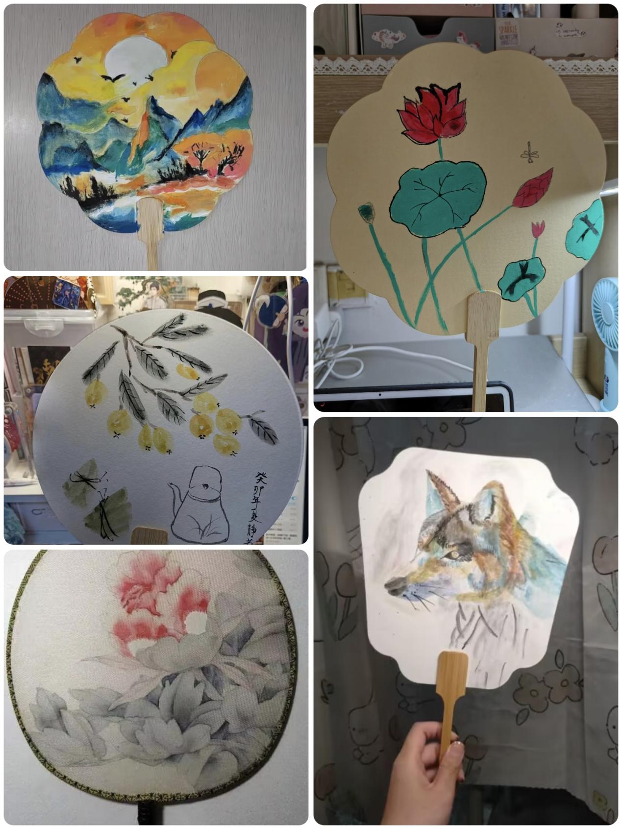 此次活动一经发出,便吸引众多同学的关注。在活动开始之后,同学们积极领取团扇并充分发挥自己的想象力,开拓思路,将团扇绘制与青春、爱国、传统文化等多元主题相结合,形成作品,精彩纷呈。
