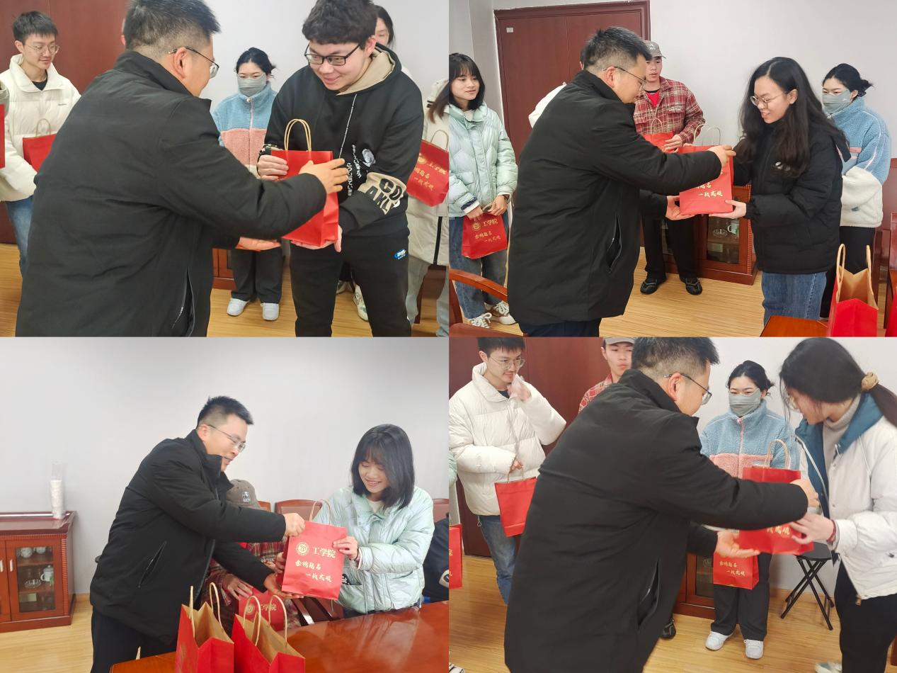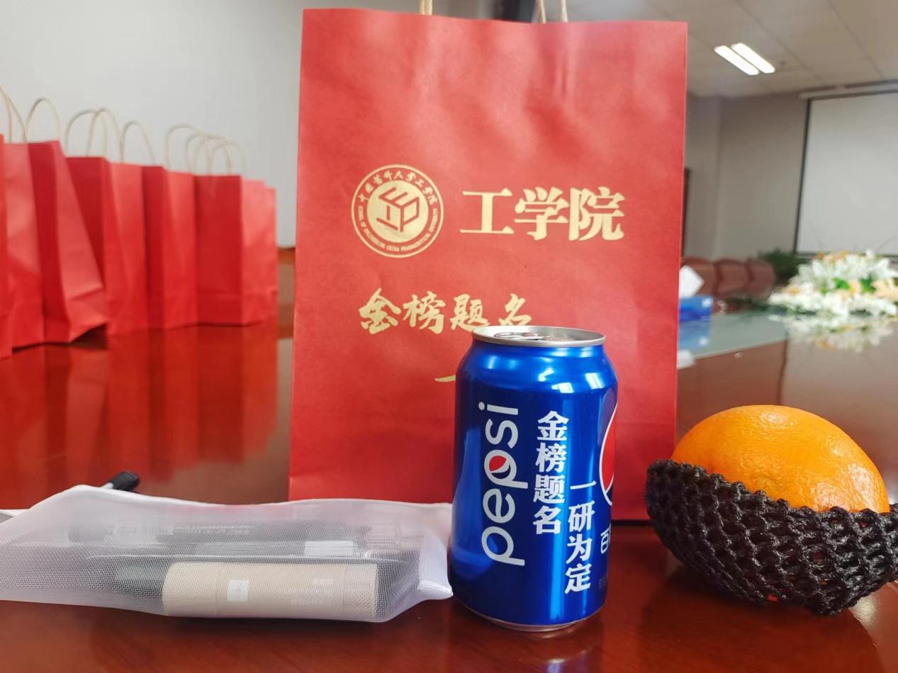 12月19日下午,在实训楼304会议室,公司党委副书记王傲珩为考研学子代表发放助力礼包,并亲切询问了考研学子的备考状态。助力礼包中,一个个橙子寓意心想事“橙”,一罐罐定制可乐祝福大家“百事可乐”,另外还有考试所需文具的套装。礼包封面也包含了公司对考研学子金榜题名的美好祝愿。收到考研助力礼包的同学们纷纷表示深受鼓舞和感动,定将不负公司的期待,坚持到底。